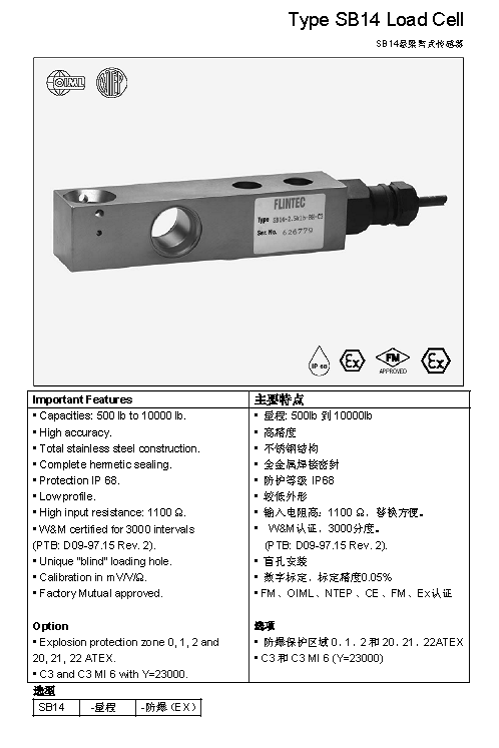 FLINTEC SB14 梁式稱(chēng)重傳感器(load cells)