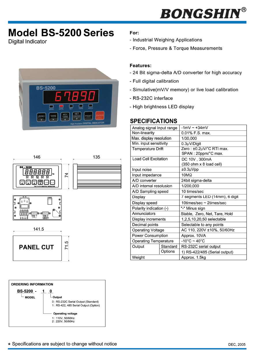 | 產(chǎn)品名稱:BS-5200 顯示儀表(digital indicator) |