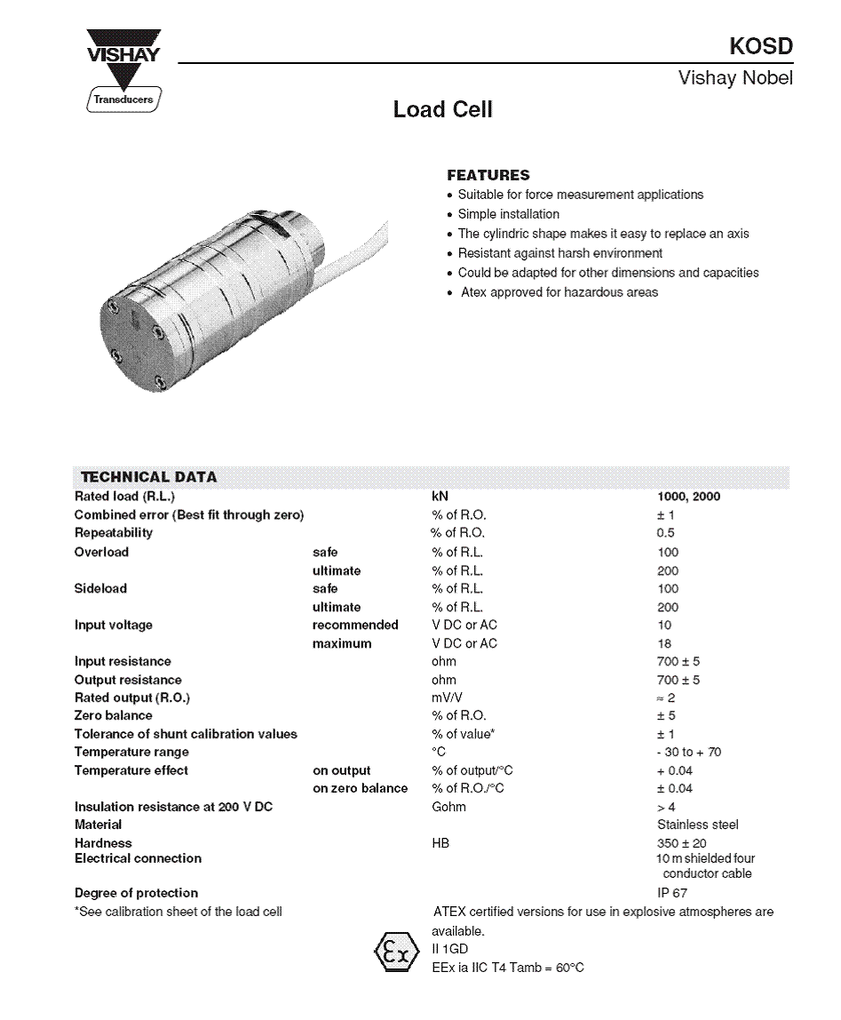 描述:KOSD - 40稱重傳感器具有堅(jiān)固的外殼,適合在惡劣環(huán)境中測(cè)力過(guò)載保護(hù)應(yīng)用。敏感元件包括三個(gè)部分,兩外部分構(gòu)成支持,中間部分是負(fù)載傳感的一部分。KOSD - 40稱重傳感器可成為負(fù)載和一級(jí)監(jiān)測(cè)模塊儲(chǔ)存,所以也可稱為KOM-1。