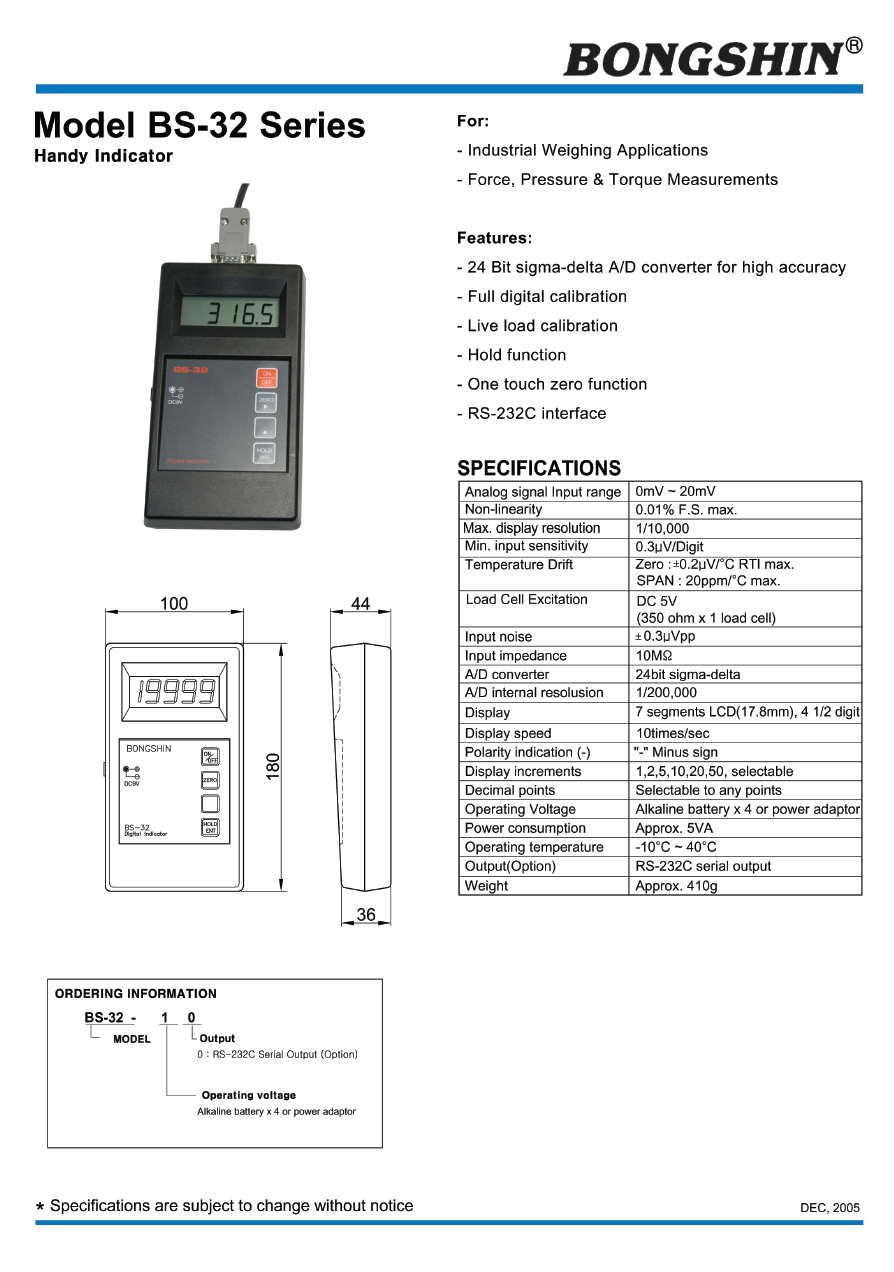 | 產(chǎn)品名稱:BS-32 稱重顯示儀表(handy indicator) |