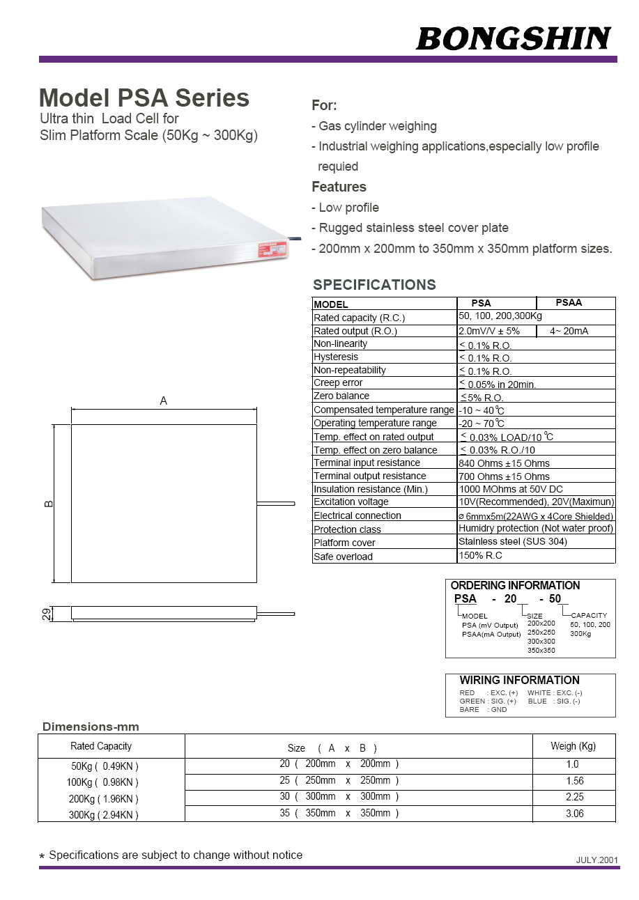 | 產(chǎn)品名稱(chēng):PSA 稱(chēng)重傳感器(load cell) |