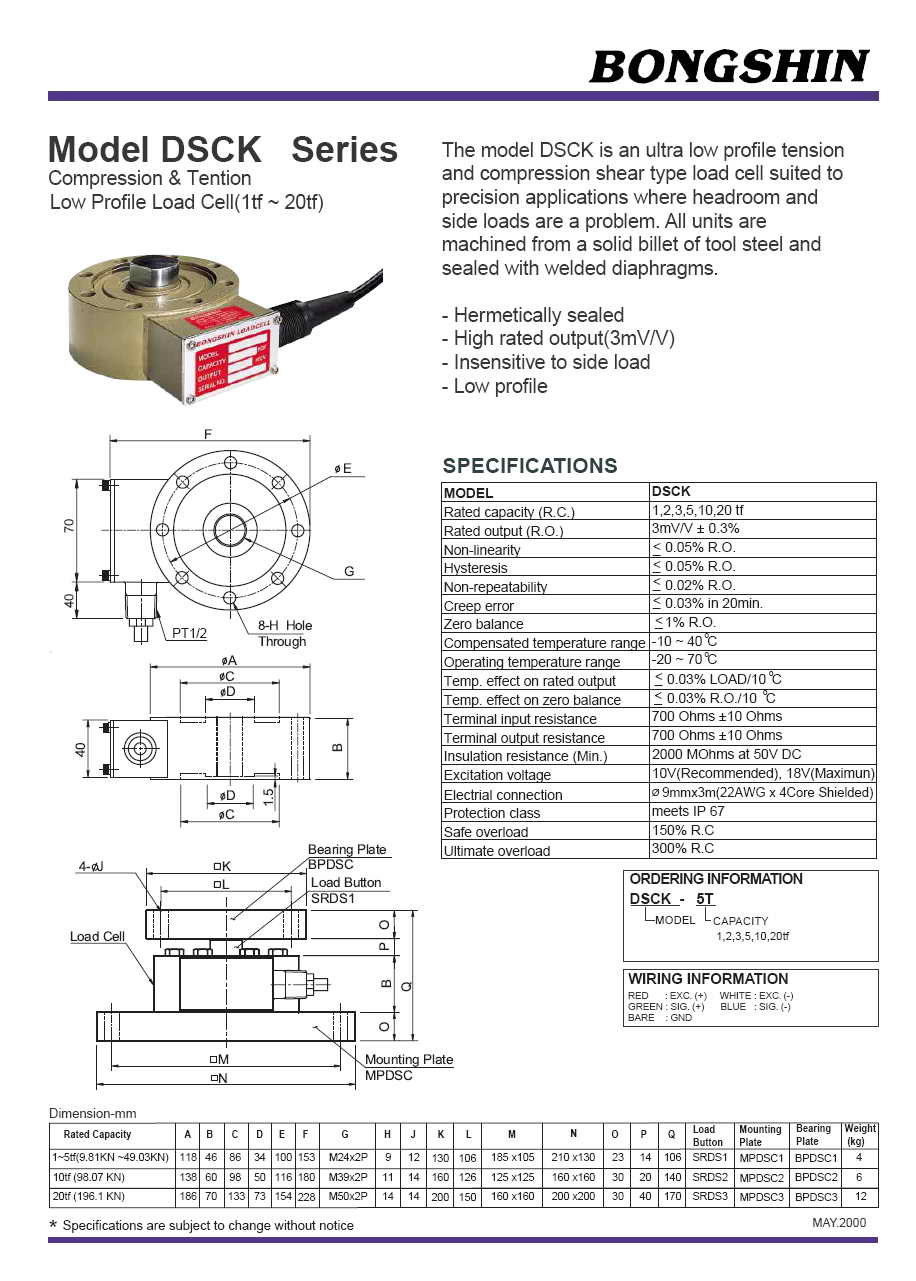 | 產(chǎn)品名稱:DSCK 拉壓式稱重傳感器(load cell) |