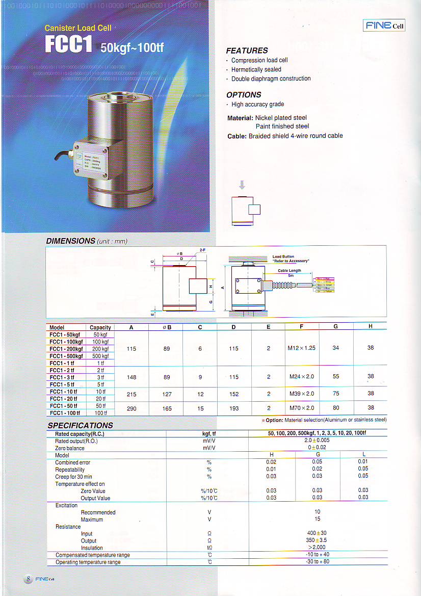Fine FCC1 柱式稱重傳感器(load cells)