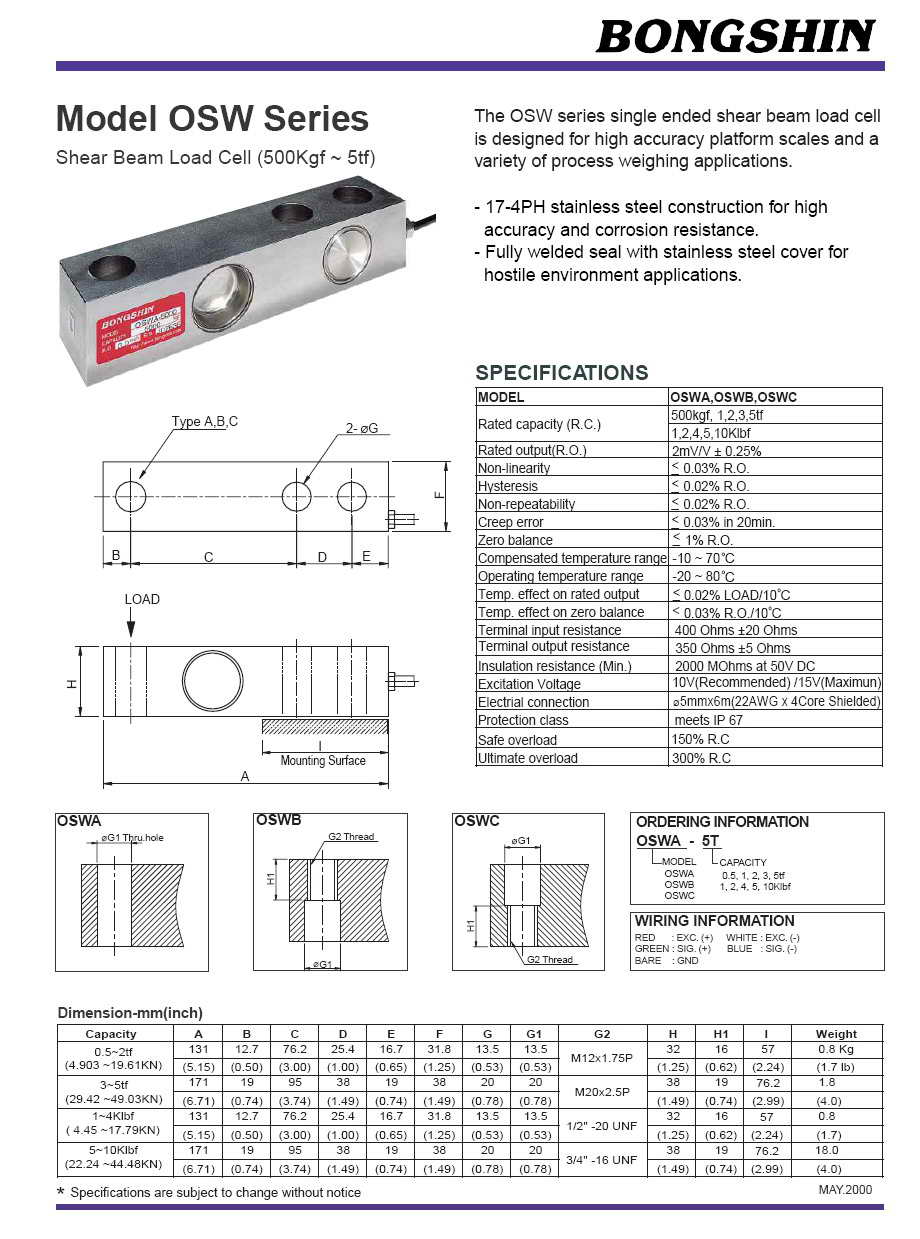 | 產(chǎn)品名稱:OSW 懸臂梁拉式傳感器(load cell) |