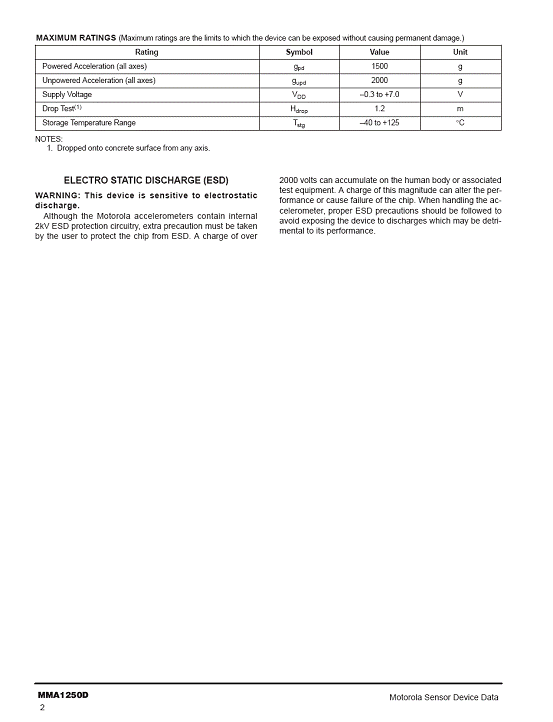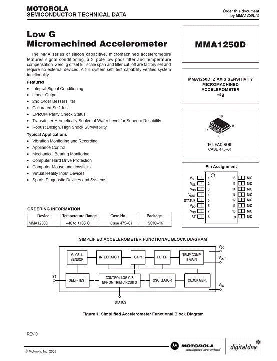 MMA1250D 加速度傳感器(Accelerometer)