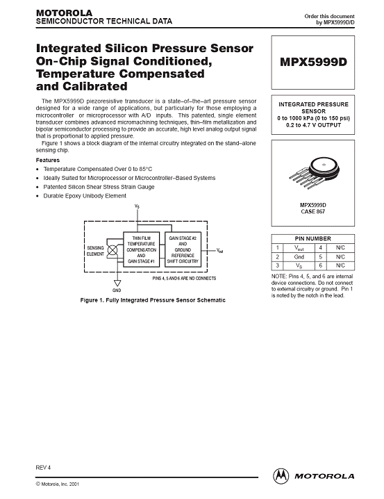 產(chǎn)品名稱:MPX5999D 氣壓傳感器(sensor) |