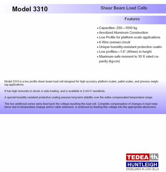 產(chǎn)品名稱:Tedea 3310 稱重傳感器(load cells) |