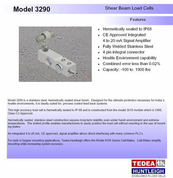 產(chǎn)品名稱:Tedea 3290 稱重傳感器(load cells) |