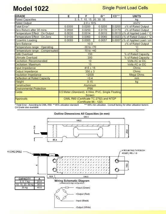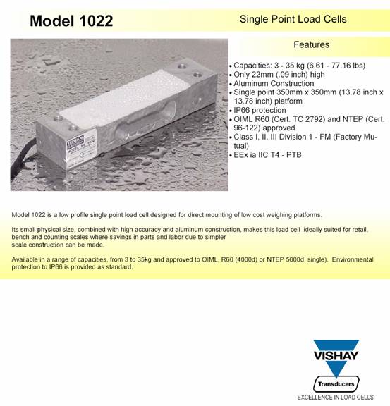 描述:1022是為低成本稱重秤設(shè)計(jì)的單點(diǎn)式傳感器。其緊湊的外形尺寸以及較低的成本適用于零售秤、計(jì)價秤和計(jì)數(shù)秤。