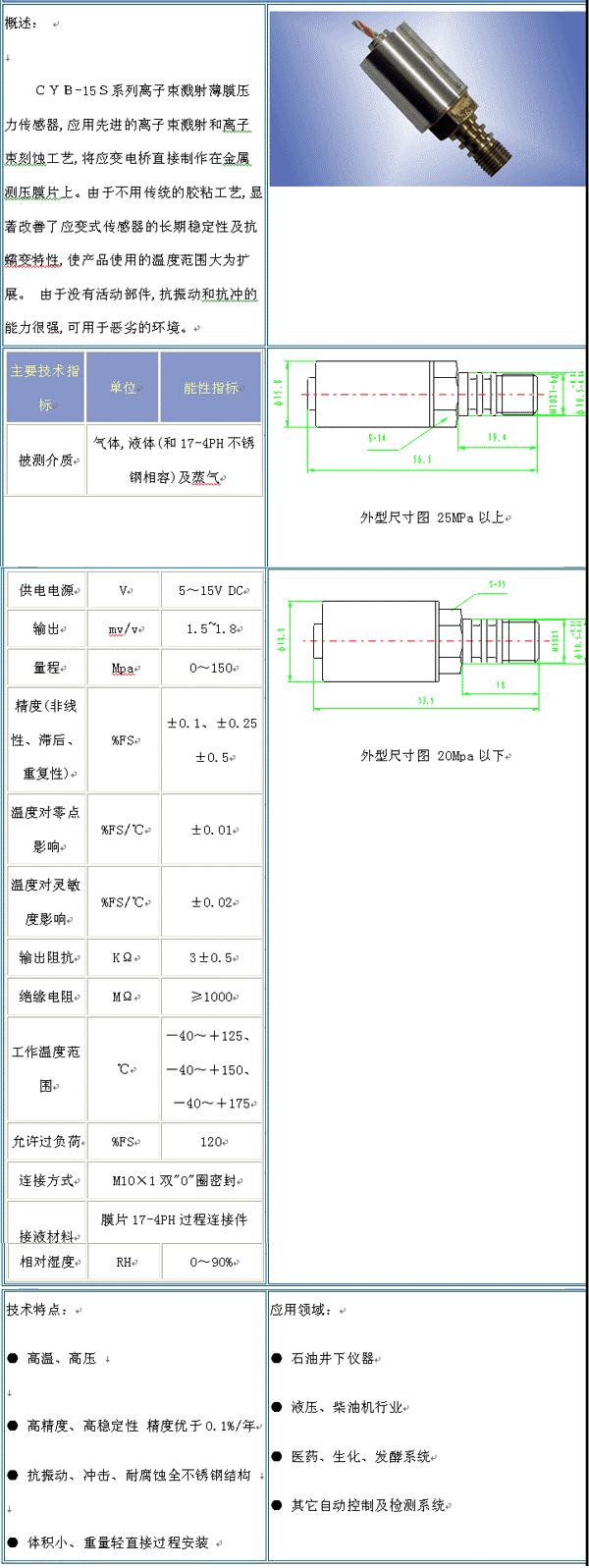 產(chǎn)品名稱:CYB-15S 濺射薄膜壓力傳感器(pressure sensor) |
